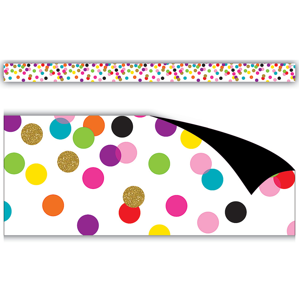 Decorate your whiteboard in a snap with durable, reusable magnetic decor! Add flair on other metal surface such as doors, desks, shelving, and bins. Cuts easily with scissors to make your own labels or game pieces. Each magnetic border is 1-1/2 in.H x 24 in.L. 12/Pkg