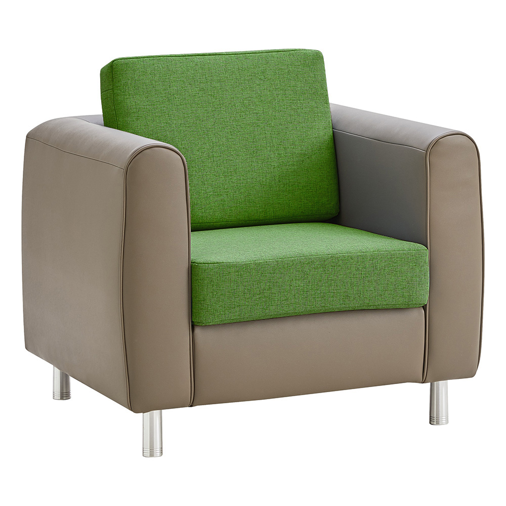 - Choose Fabric or Faux Leather backrest and seat cushions in color of your choice while the body (Arms, back and base) is covered with Toffee Brown Synthetic Leather