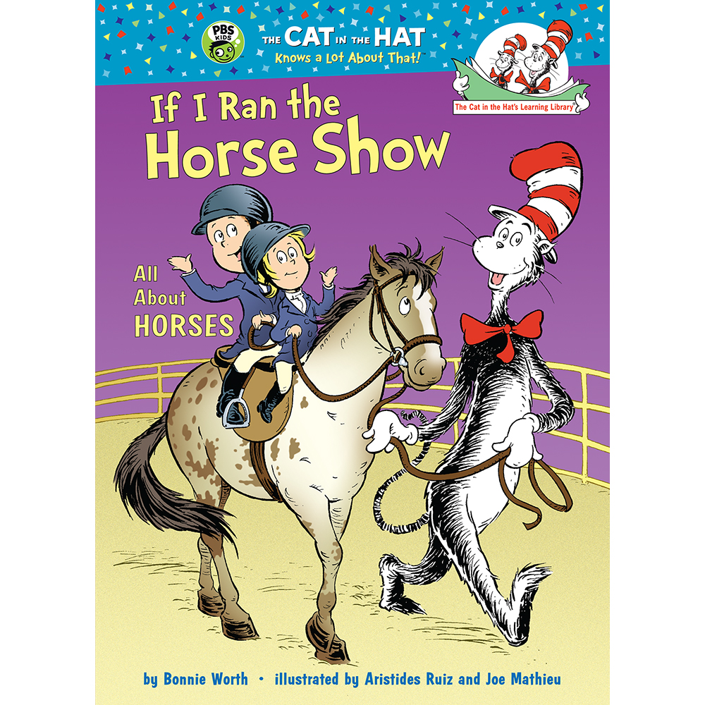 Calling all young equestrians and Cat (in the Hat) fanciers! In this latest installment of the Cat in the Hat's Learning Library™ , the Cat introduces Sally and Nick — and beginning readers — to all things horsey. At his Super-Tremendous-Stupendous Horse Show, the Cat explains how horses and people have worked together since ancient times; the difference between fillies, foals, yearlings, mares, colts, dams, sires, and stallions; horse anatomy from nose to tail; the work of a farrier, Western vs English riding; and much, much more — including fun facts about 13 of the most popular horse breeds! Fans of the new PBS preschool science show The Cat in the Hat Knows a Lot About That! (which is based on the Cat in the Hat's Learning Library™ ) will whinny with glee over this new addition to the series!