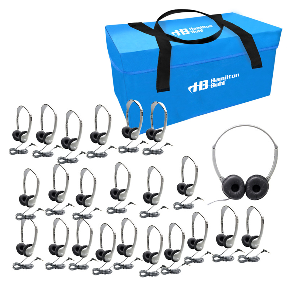 Introducing the HamiltonBuhl® Lab Pack - your comprehensive solution for equipping classrooms and educational environments with high-quality, personal-sized headphones. This lab pack includes 24 MS2L headphones with leatherette ear cushions, all conveniently stored in a heavy-duty woven polyester carry case.