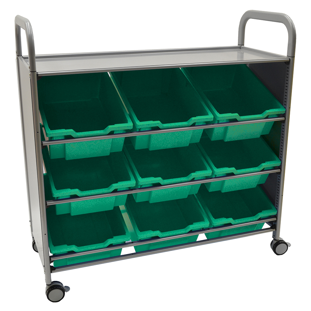 - Gratnells® Callero Tilted Tray Storage Cart with 9 Deep Trays is ideal for transporting collaborative learning supplies from place to place