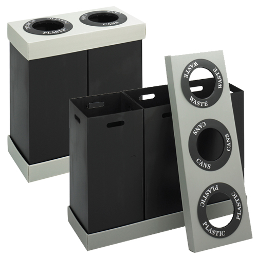 These Recycling Centers perform as an indoor, trash and recycling receptacle for higher traffic areas. Plastic bins hold paper, plastic, cans or waste (decal kit included) making it easy for your patrons to recycle. Each bin include built-in handles for easy mobility. Container's are lightweight and easy-to-clean.