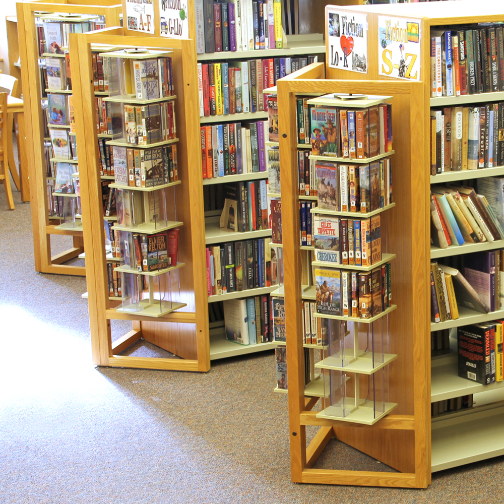 | Capacity: 480 Paperbacks, 240 VHS or 560 DVDs | Capacity: 600 Paperbacks | ||