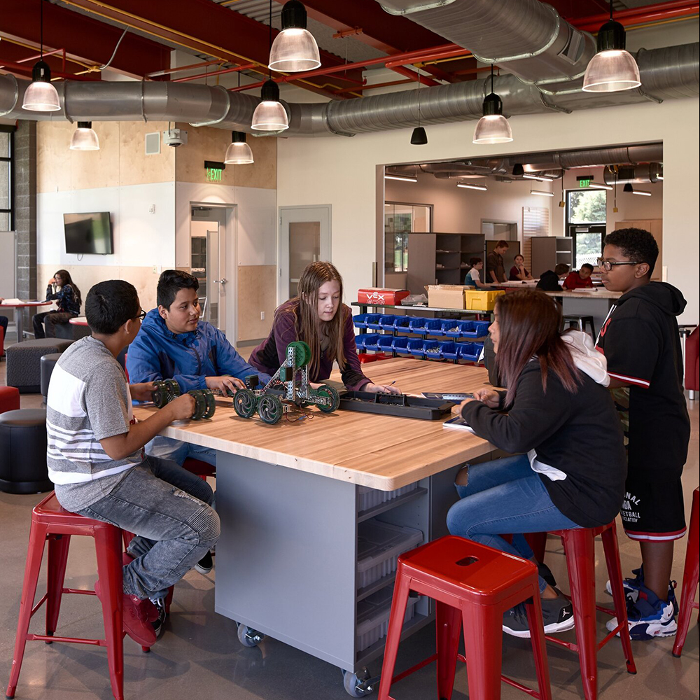 The Ed Double Storage Makerspace Table offers a seamless blend of innovation and practicality, delivering a makerspace solution that inspires creativity. Ideal for engaging learners in project-based education, it features integrated storage bins, convenient electrical outlets, and six metal stools that magnetically secure to the table, simplifying cleanup and transport.