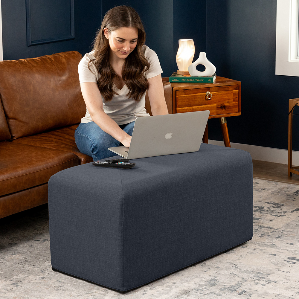 Meet the Monroe, the perfect multi-functional piece for your interior space. This 18-inch high ottoman comes in three sizes and features sleek rounded edges, a firm foam core, and stylish seam detailing that enhances its contemporary look. Whether as a side table, extra seating, or ottoman, Monroe adapts seamlessly to your needs.